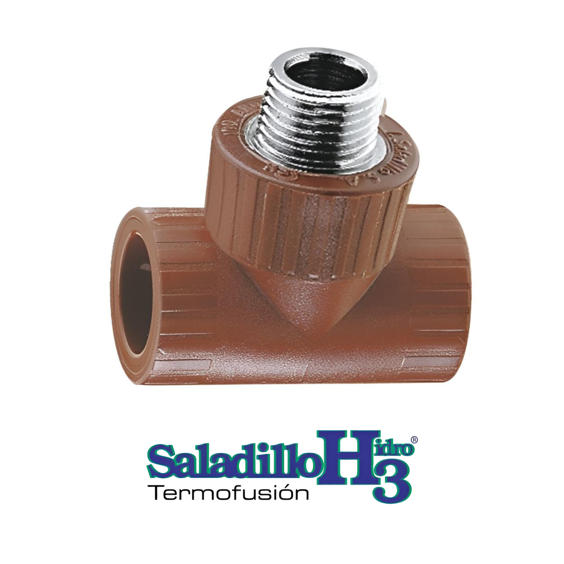 Accesorio robusto y confiable para instalaciones de agua por termofusión. Este té cuenta con dos bocas para unión por termofusión y una salida con rosca macho metálica, ideal para conectar artefactos, válvulas u otros componentes con rosca hembra. Fabricado por Saladillo, líder en sistemas de conducción, garantiza durabilidad y máxima estanqueidad.