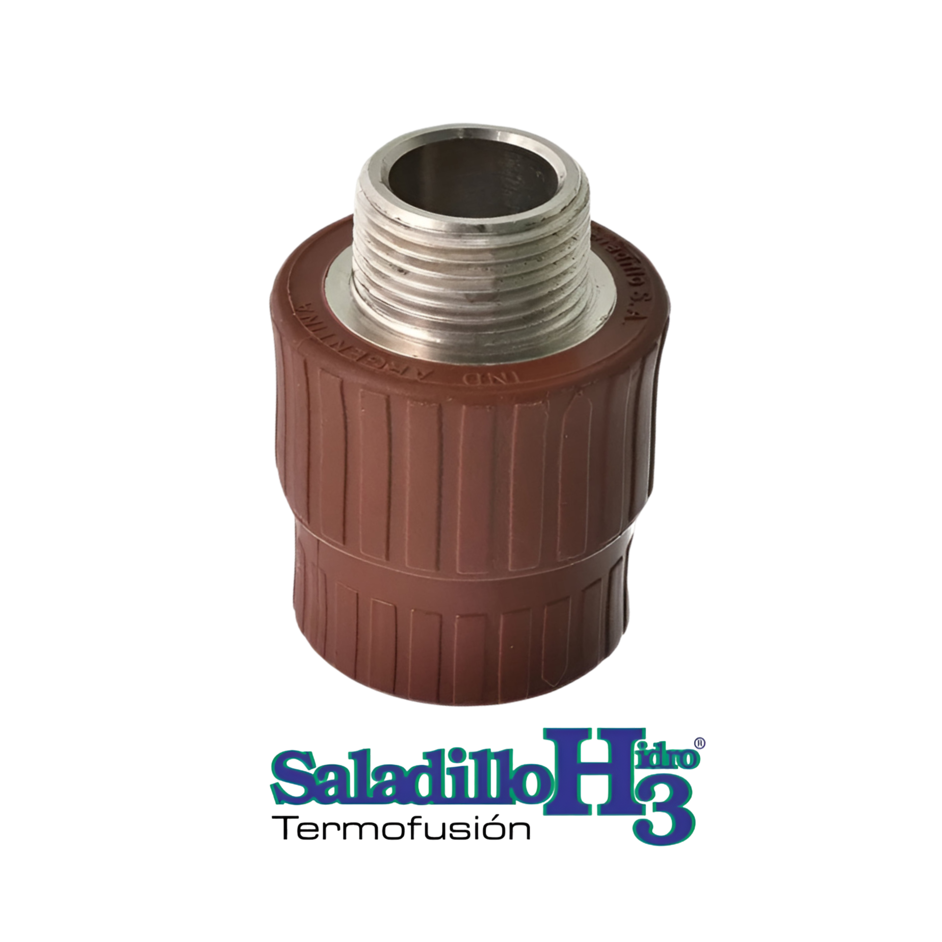 Accesorio confiable para conexiones mixtas en sistemas de termofusión. Permite unir cañerías plásticas a componentes con rosca hembra como válvulas, griferías o bombas. Una de sus bocas se une por termofusión, y la otra cuenta con rosca macho metálica para asegurar una conexión firme, duradera y estanca.